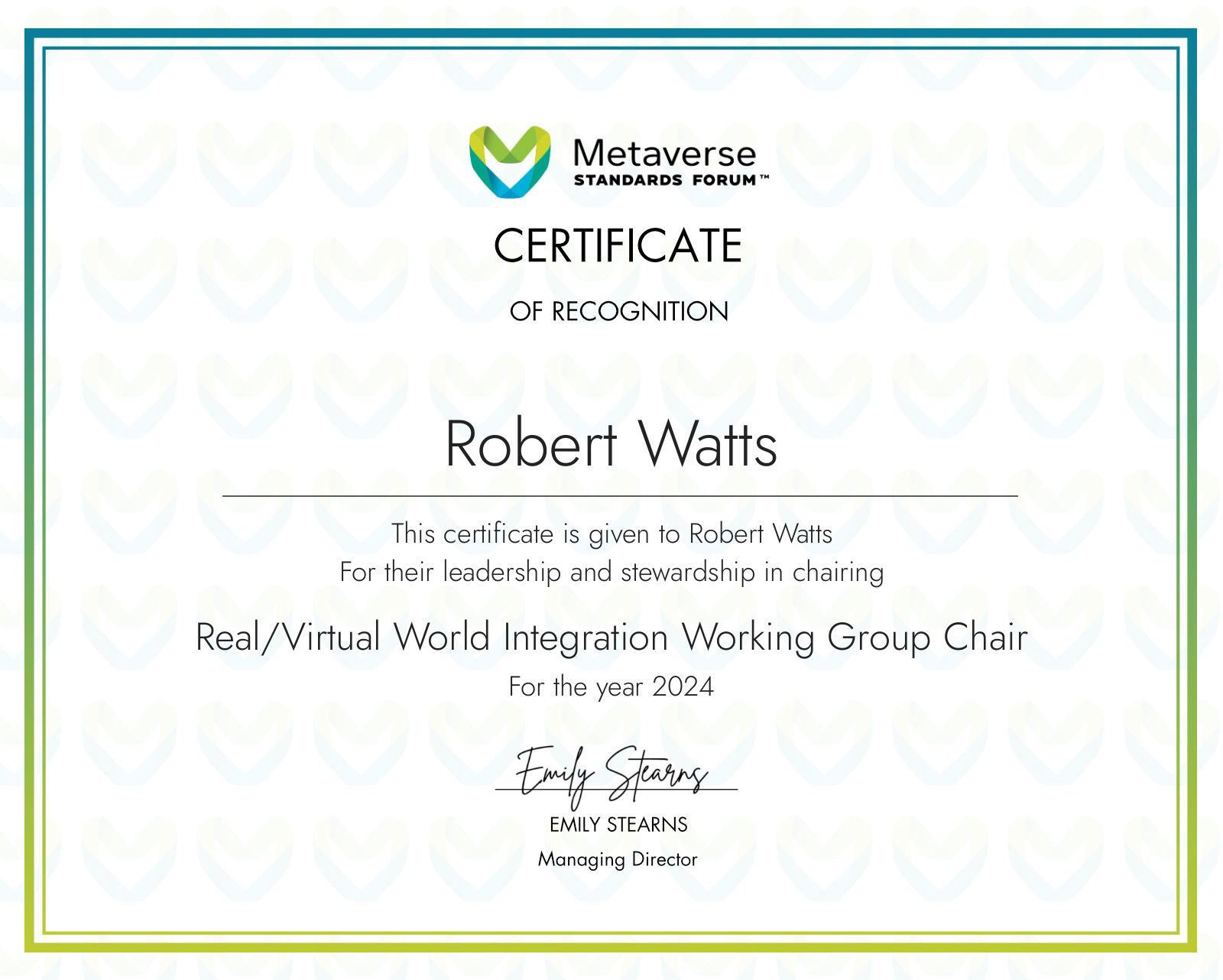 Metaverse Standards Forum Certificate of Recognition